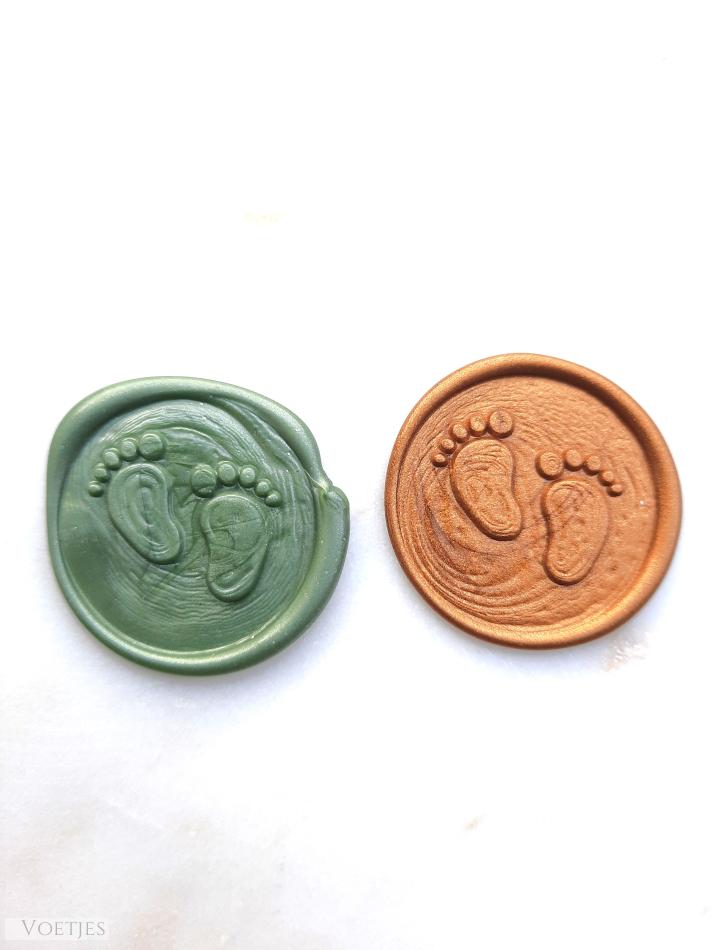 Een lakzegel is ongeveer 3 cm in doorsnede en is voorzien van een zelfklevend plakkertje.